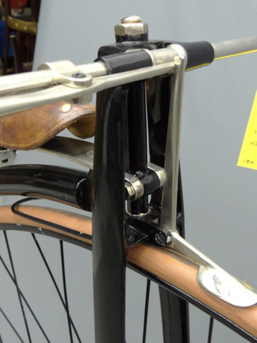 A lot of differences between this later Standard Columbia and the early 1881-model. Direct spokes and ball bearings, for instance.